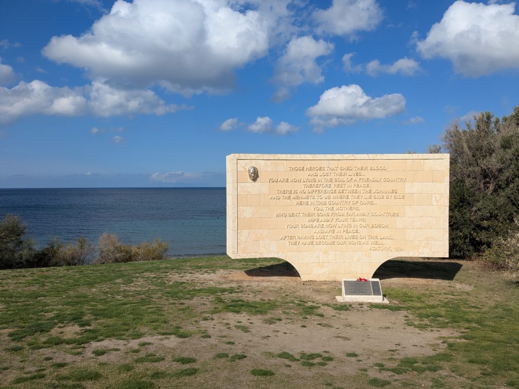 If you take the ferry across the Dardanelles at Çanakkale you cannot fail to notice a slogan that has been written in huge white letters on the hillside.  The slogan reads (in Turkish), ‘Stop traveller! Maybe you didn’t know! It was on this soil that an epoch came to an end!’  You see that and you realise that this isn’t going to be just another sightseeing trip.