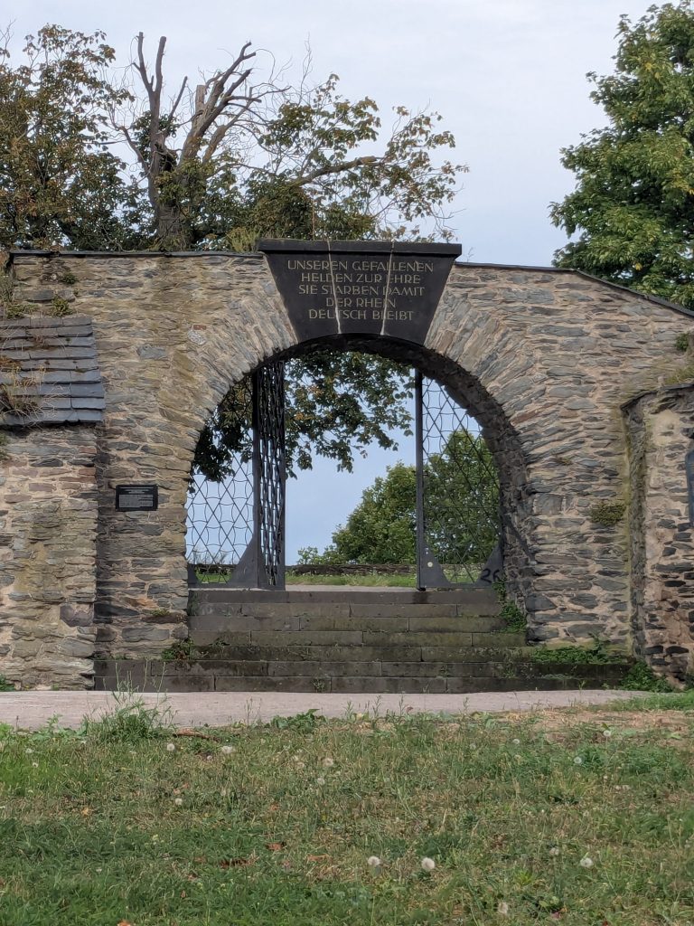 The early 30’s seems to have been the time for war memorials. Just 50km up the Rhine is the small town of Andernach. There, on the site of some 17th century fortifications overlooking the Rhine, a Memorial Union formed in 1928 and led by a Professor Heinrich Aschenberg, erected a monument in 1930 ‘in honour of our fallen heroes; they died so the Rhine would remain German.’