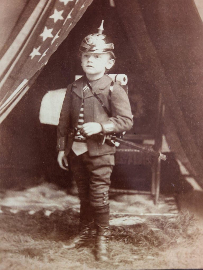 Onkel Emil was a blacksmith specializing in ornamental ironmongery. He had a workshop that had previously belonged to his father and he lived in a house over the workshop. His father had had an interest in collecting weapons and so Onkel Emil had inherited an impressive collection of weapons dating from the Thirty Years War. As well as that his father had also picked up a few items from the First World War, including some of the distinctive Pickelhaube helmets the from different regiments and a bugle. So, of course, I was very excited to try on a Pickelhaube and march around with seventeenth century halberds. This was a house where a boy could play at soldiering.