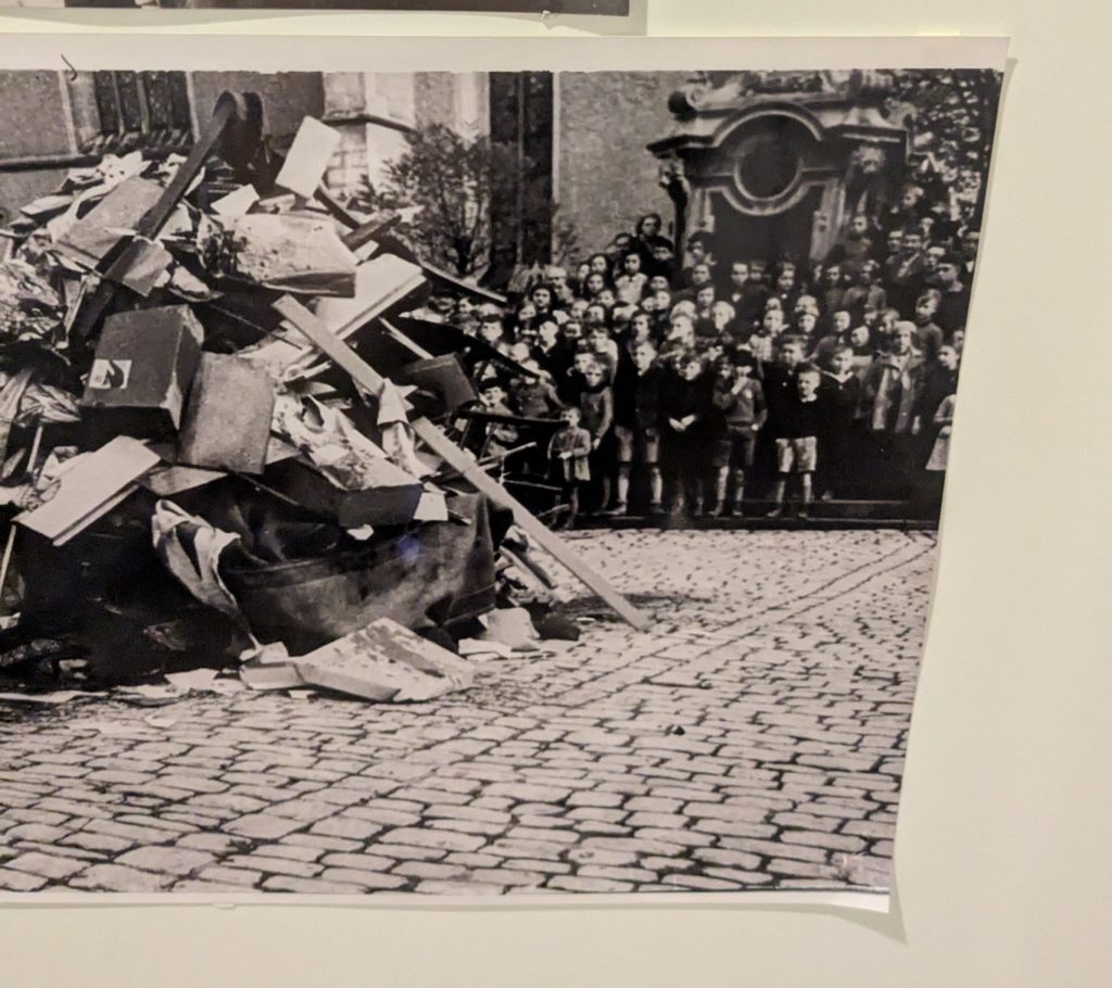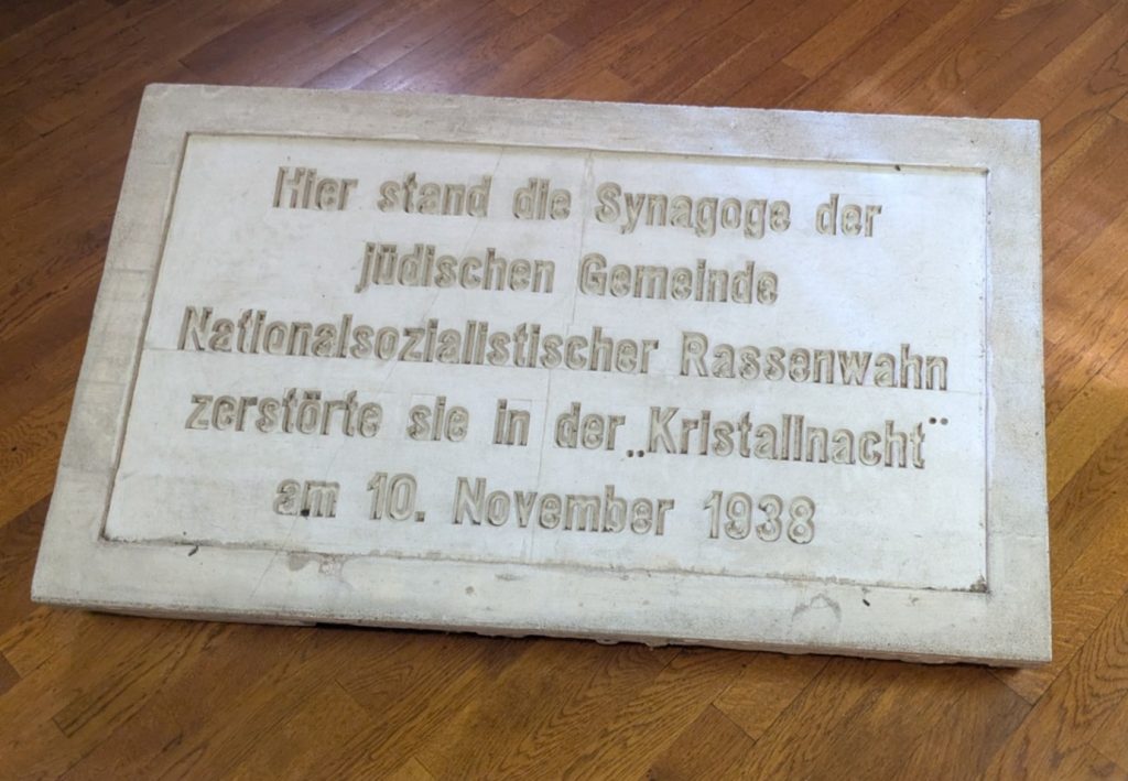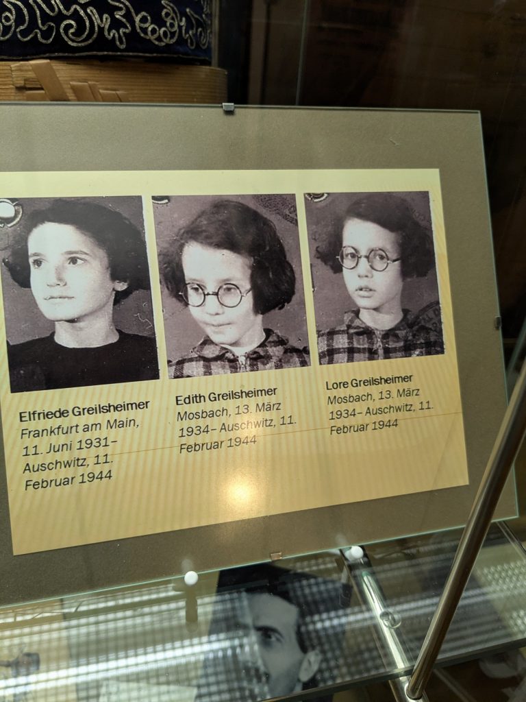 When it comes to honouring its Jewish history, the town museum faces the challenge of having very few surviving artifacts to tell this story. Three types of artefacts dominate this section of the museum. The first are advertisements from local newspapers from local Jewish businesses that locate the Jewish community firmly in the streets of the old town. The second are documents from the files of local government officials who carried out the measures the Nazi government implemented to restrict the lives of Jewish people in the 1930’s. And the third are photographs and accounts of Kristallnacht in Mosbach when the synagogue was burned down and its contents brought out into the main square to be burned. It seemed like the whole town turned out to watch.